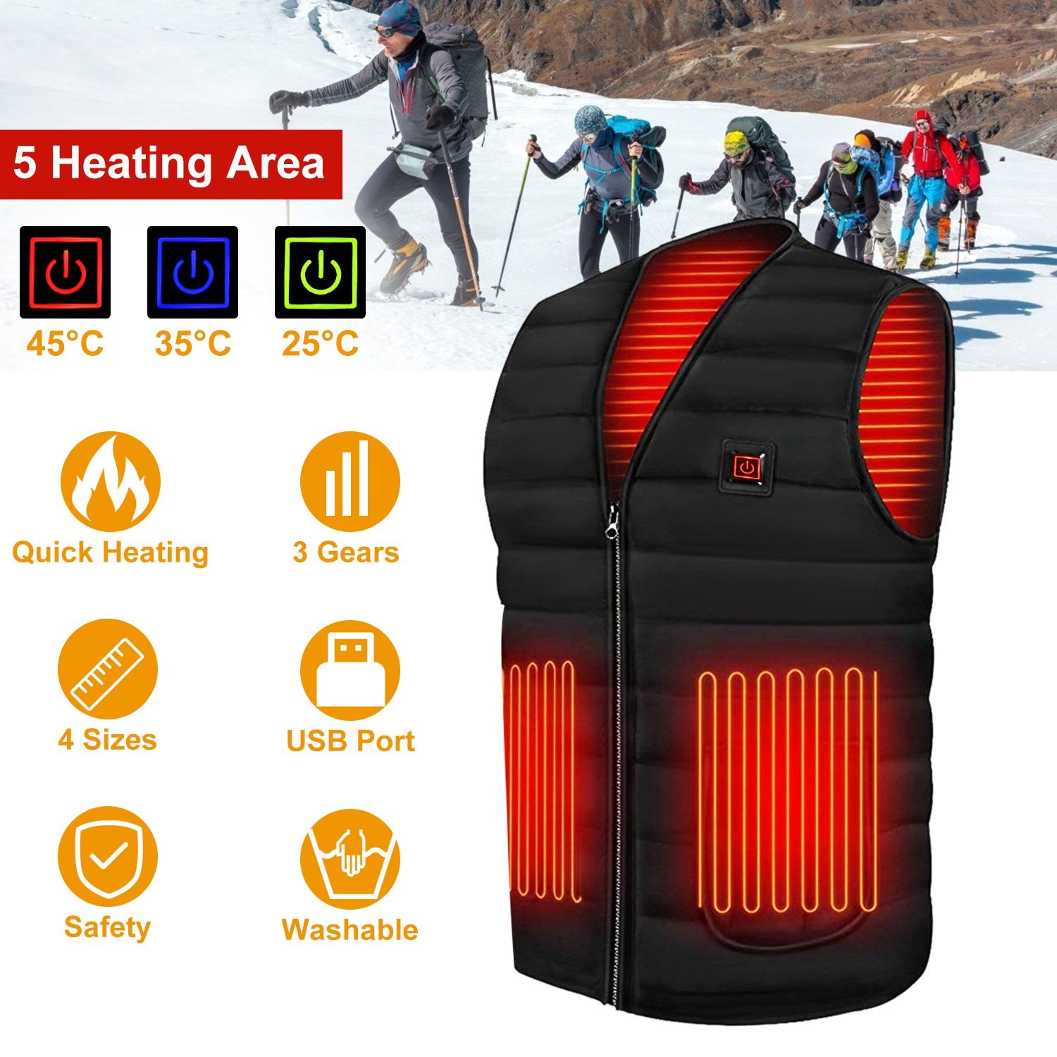 Home > Heat Jacket Vest 3 Heating Gear Adjustable USB Heated Vest Warm Heat Coat Vest w/ 5 Heating Pads For Men Women Winter Outdoor Activity
