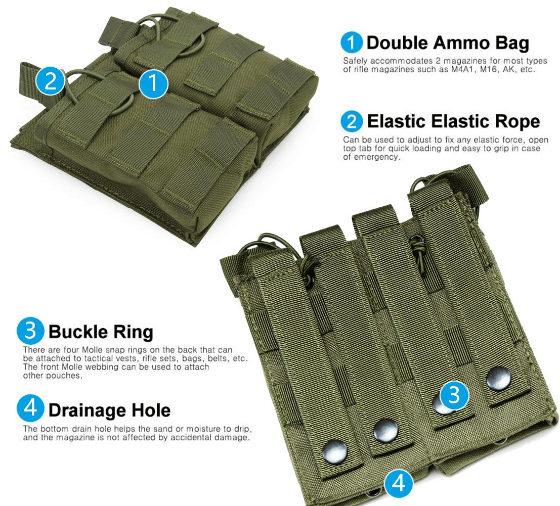 3.[Hard and Durable] Magazine pouch is made of military grade 1000D wear-resistant nylon. It is very tear resistant, tear resistant and waterproof. It can be used in harsh and humid outdoor forest.