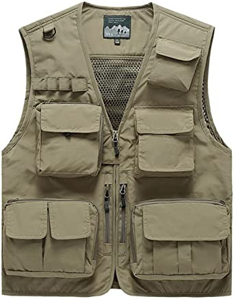 Mens 3 Solid Color Plaid Vests Zip Placket Waterproof Coats