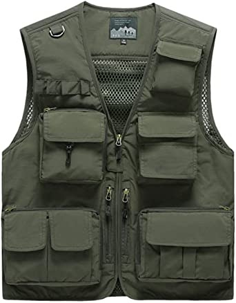 Mens 3 Solid Color Plaid Vests Zip Placket Waterproof Coats